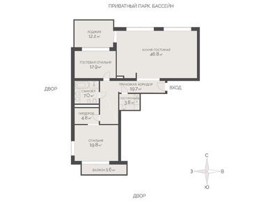 На этажах расположены всего по 2–3 квартиры площадью от 86 кв. м с потолками высотой до 4 метров. Эксклюзивные форматы представлены резиденциями с выходом в сад и террасами, двухэтажными пентхаусами с патио на крыше.