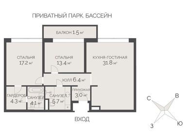• крытый и открытый бассейны с «зимним пляжем»;
