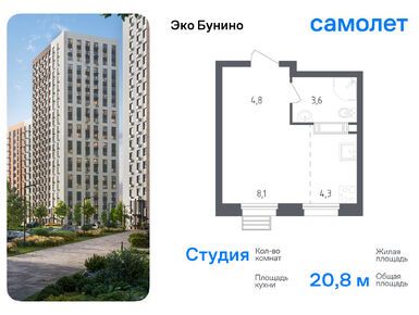 В первой половине декабря 2025 года в ЖК «Эко Бунино» в продаже представлены 399 квартир в семи корпусах — готовых и строящихся. Площадь лотов — от 21,3 до 97,9 кв. м.