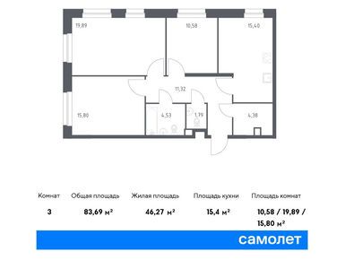 3-комн. квартира 83,69 м2 22 231 614
