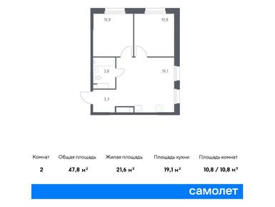 2-комн. квартира 47,80 м2 15 951 937