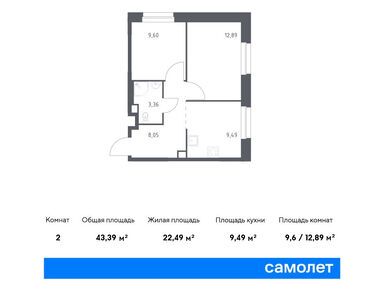2-комн. квартира 43,39 м2 12 342 512