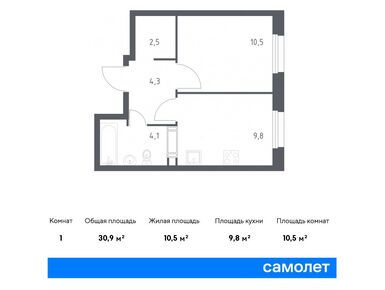 1-комн. квартира 30,90 м2 9 386 488