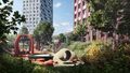 На территории квартала разместятся детские и спортивные площадки, беседки, амфитеатр, теплицы, водные и арт-объекты.