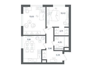 Квартирография включает варианты от студий площадью 28,2 кв. м до лотов с четырьмя комнатами площадью 114,97 кв. м, есть квартиры с террасами, лоджиями, несколькими санузлами и кладовыми на кухнях. Эксклюзивные форматы представлены двухуровневыми резиденциями со вторым светом, площадь таких лотов — от 77,7 до 141,9 кв. м.
