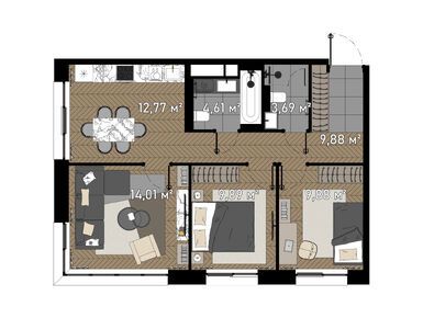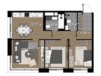 Стоимость квадратного метра варьируется от 422 тыс. руб. до 963 тыс. руб. С момента старта продаж средняя цена предложения выросла почти на 50%. Сейчас в ЖК «Зорге 9» можно купить помещение разных форматов: от студий площадью 26–28 кв. м до трехкомнатных площадью 81,6 кв. м.
