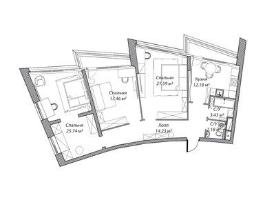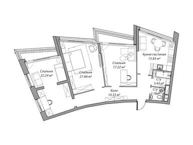 Площади помещений варьируются от 34,6 кв. м (студии) до 151 кв. метров (4 комнаты). Из окон открываются виды на сторону Мякининской поймы, Живописной бухты и парка Липовая роща. Но у некоторых лотов будут и виды в сторону МКАД.