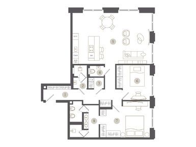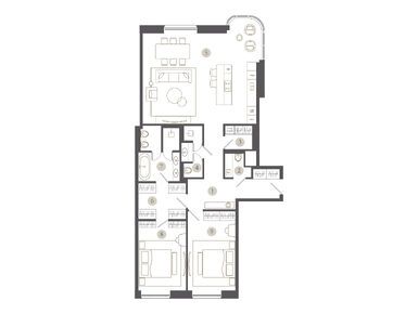 Первые этажи здания отведены под общественные зоны, где находятся переговорная комната-трансформер, премиальный кинотеатр, Wellness-Spa зона, фитнес, плавательный бассейн, ресторан, винная комната и сигарный лаунж. Подземные этажи здания отведены под двухуровневый паркинг, оснащенный зарядными устройствами для электромобилей и многоступенчатой системой охраны, и индивидуальные кладовые разной площади.