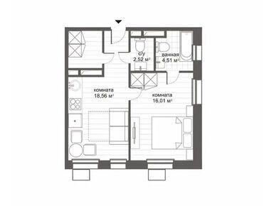 Площадь от 21.74 до 45.47 - на любой вкус и бюджет, как говорится, а высота потолков 2,6 м, хотелось бы повыше, конечно. Отделка в двух стилях: в бежевой или серой цветовой гамме, тоже плюс