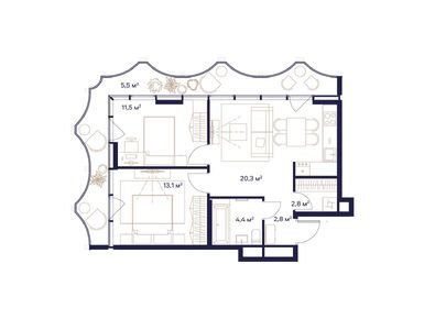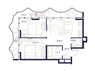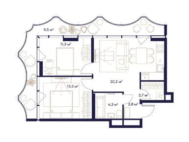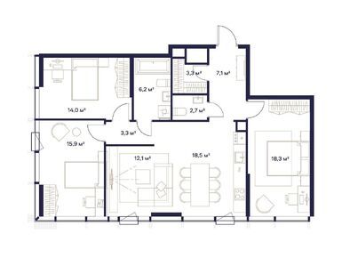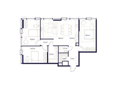 В квартирографии проекта более 40 видов планировок. Есть лоты с мастер-спальнями, гардеробными, есть квартиры и пентхаусы с террасами. Площади квартир варьируются от 29 до 186 кв. м. В каждой квартире есть балкон и панорамное остекление.