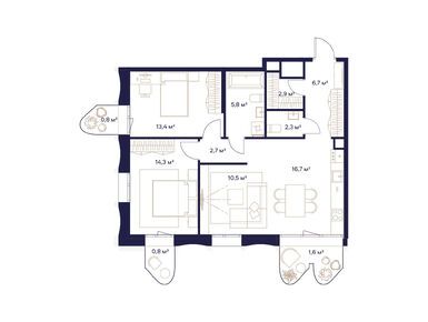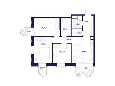 В конце декабря 2024 года для покупки доступны 196 квартир — от студий площадью 27,4 кв. м до 4-комнатных площадью 146,4 кв. м. Цены — от 16,1 млн рублей за 28-метровую студию.