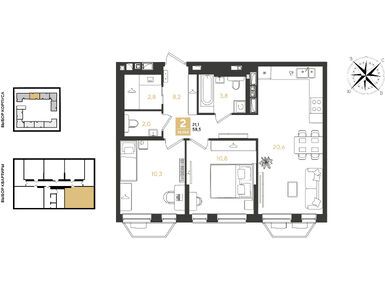 На выбор покупателей представлены компактные и вместительные семейные квартиры: студии и однокомнатные лоты евроформата, традиционные планировки с отдельной просторной кухней, квартиры с двумя разнесенными спальнями и большой гостиной. Среди редких форматов выделяются лоты с мастер-спальнями, отдельными гардеробными, угловым остеклением, лоджиями с красивым видом на природный пейзаж.