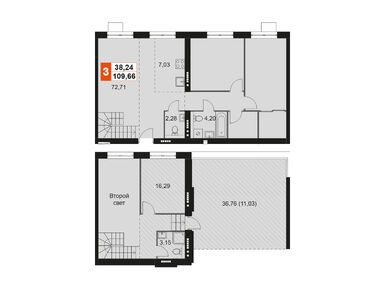 В двух клубных малоэтажных домах запроектированы квартиры площадью от 29,6 до 126,65 кв. м, в том числе лоты с террасами на первом этаже и двухуровневые пентхаусы с террасами на третьем этаже.