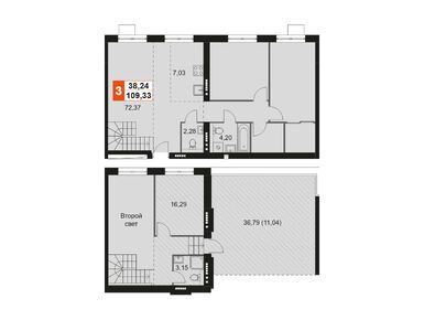 В таунхаусах будет по 4–5 комнат, минимальная площадь таких лотов — 122,2 кв. м. Все они представлены в евроформате, у каждого таунхауса есть отдельный вход, парковка на две машины и земельный участок до 3 соток.