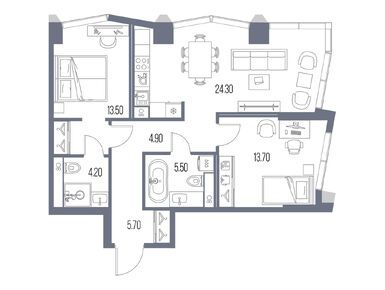 Планировки трехкомнатных квартир в ЖК«Северный Порт»