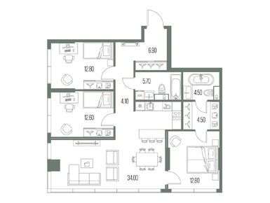 Планировки четырехкомнатных квартир в ЖК«Северный Порт»