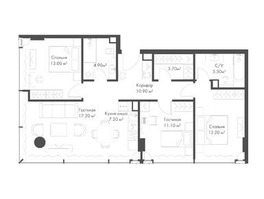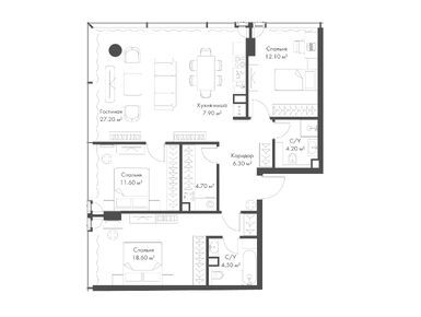 К концу июня 2024 года в продаже были квартиры площадью от 29,3 кв. м до 103,3 кв. м — от студий до лотов с тремя спальнями и кухней-гостиной. Особенности планировок: мастер-спальни, гардеробные, угловое остекление. Купить квартиру в Slava можно от 25 млн рублей.