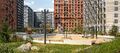 В жилой квартал входит три жилых блока с подземным паркингом и два детских сада, а также спортивные и детские игровые площадки, собственная благоустроенная набережная. Рядом с ЖК работают еще 4 детсада, 3 школы, две поликлиники, крупные торговые центры.