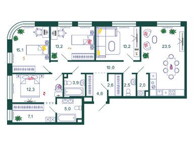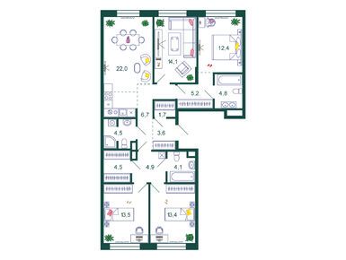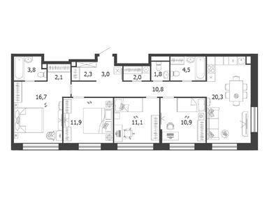 Во второй половине октября 2025 года в продаже есть 417 квартир — от 23-метровых студий до 4-комнатных площадью более 184 кв. м, преимущественно евроформата. Цены — от 17,55 млн рублей. Купить квартиру от застройщика можно в ипотеку.