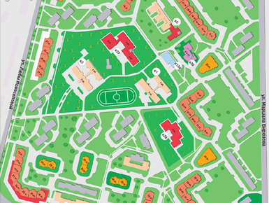 Зоны общего пользования имеют индивидуальный дизайн. Под жилыми зданиями есть паркинги, у домов комплекса предусмотрены открытые автостоянки. На территории микрорайона запланированы детские игровые городки и спортивно-оздоровительные площадки..