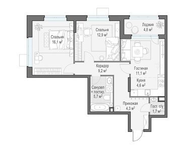 Планировки трехкомнатных квартир в ЖК «Новое Медведково»