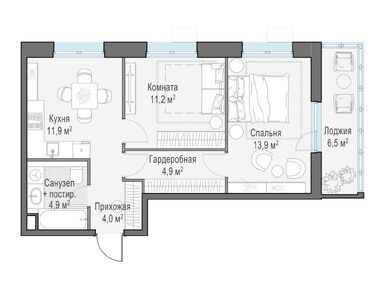 Квартиры в ЖК «Новое Пушкино» имеют площадь от 23,6 до 74 кв. м. В продаже есть студии, однокомнатные, двухкомнатные и трехкомнатные квартиры, в том числе с лоджиями и гостевыми санузлами и окном в ванной. Отделка в новых корпусах предлагается только двух видов — черновая и чистовая. Чистовая может быть выполнена в одном из двух стилей — более спокойном «Сканди» или более ярком «Брюгге». В предыдущей очереди домов также был доступен формат white box.