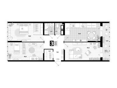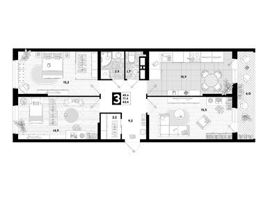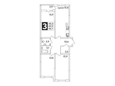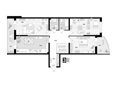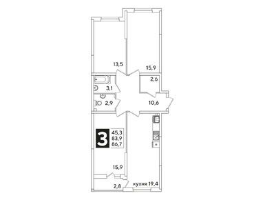 Планировки трехкомнатных квартир в МКР «Самолет»