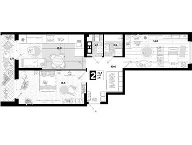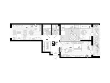 Планировки двухкомнатных квартир в МКР «Самолет»