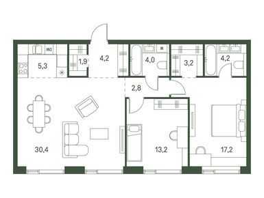 Планировки четырехкомнатных квартир в ЖК Moments (Моментс)