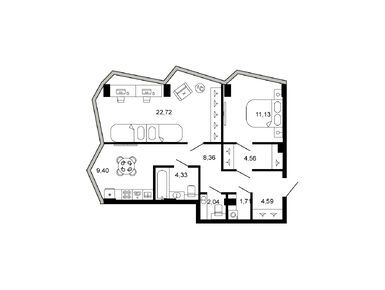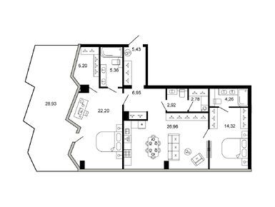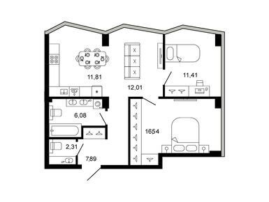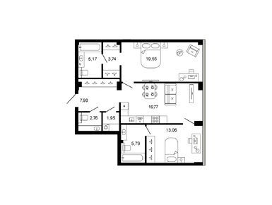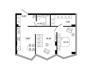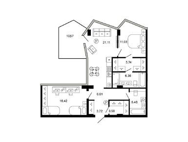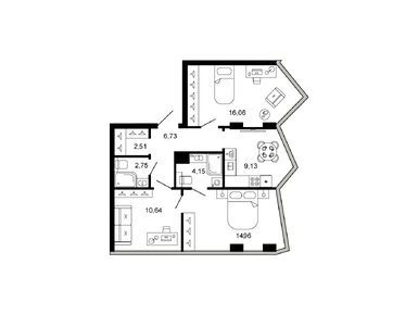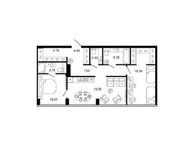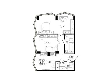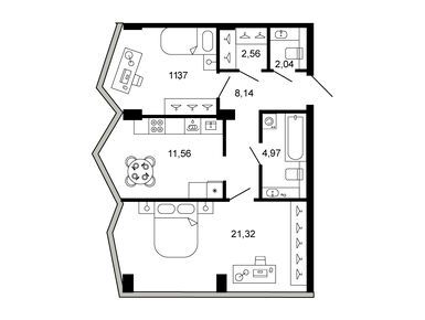 Планировки двухкомнатных квартир в Клубном доме Novaya, 11 (Новая, 11)