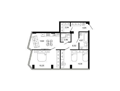 Планировки трехкомнатных квартир в Клубном доме Novaya, 11 (Новая, 11)