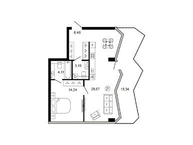 Планировки однокомнатных квартир в Клубном доме Novaya, 11 (Новая, 11)