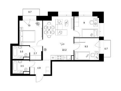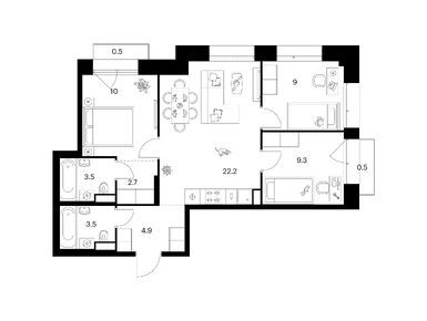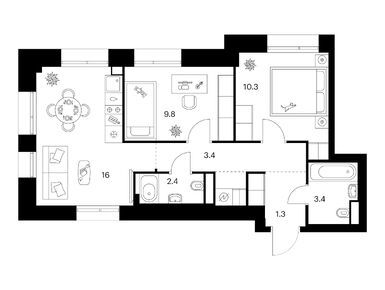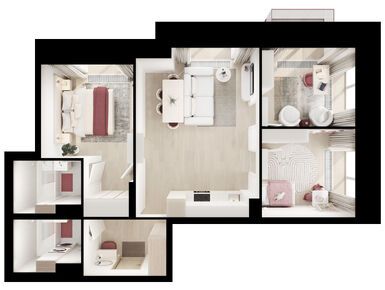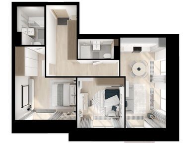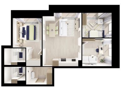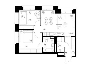 На выбор — 57 вариантов планировок площадью от 28 до 90,5 м2. Есть квартиры с мастер-спальнями с собственной ванной, просторными кухнями-гостиными, компактными кухнями-нишами и двумя санузлами. Для семей с детьми мы предусмотрели планировки со спальнями, расположенными в разных сторонах гостиной.