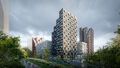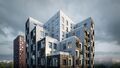 Архитектура квартала навеяна северной природой: разновысотные здания повторяют живописные линии северных скал и высоких хвойных деревьев. Это отражено и в колористике — фасады окрашены в цвета серого гранита, сосновой коры и серебристой глади воды.