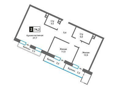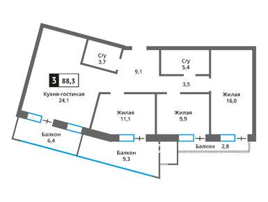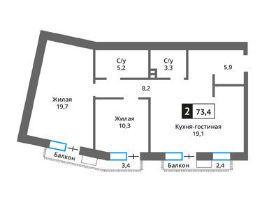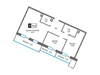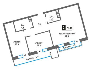 Квартирография ЖК включает в себя квартиры с 1–3 изолированными спальнями, общей площадью от 36 до 118 кв. м. Среди доступных к покупке предложений есть лоты с просторными кухнями-гостиными, с балконами, лоджиями и террасами площадью до 40 кв. м. Все квартиры сдаются без отделки.