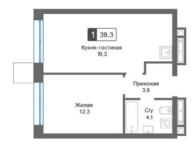 1-комн. кв, 39.30 м