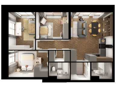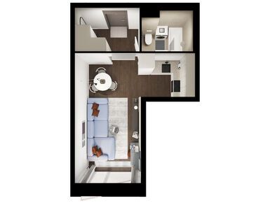 Специально для «Строгино 360» бюро разработало авторский дизайн гранд-лобби, где можно встретиться с близкими или партнёрами, поработать или поиграть с детьми. Для этого здесь появятся коворкинг, ресепшен, пространства для отдыха, игровая для детей и гостевой санузел.