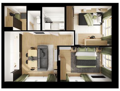 Плюсы — в девяти строящихся корпусах квартиры сдаются с уже готовой отделкой, а значит в них можно заехать сразу после получения ключей и не тратить дополнительное время и деньги на ремонт.