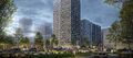 На первых этажах корпусов появится необходимая инфраструктура. Для автомобилей — подземный и многоуровневые наземные паркинги. Застройщик обещает отреставрировать водонапорную башню XIX века, которая находится на территории ЖК, и создать вокруг нее общественное пространство для жителей квартала.