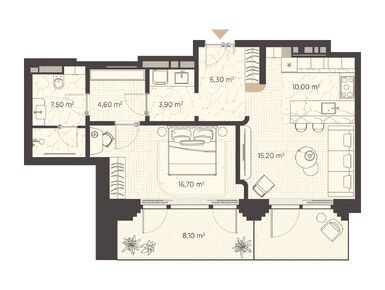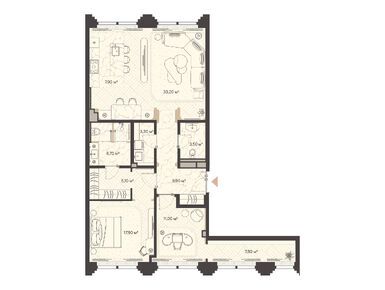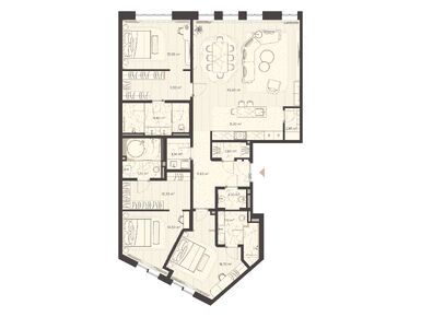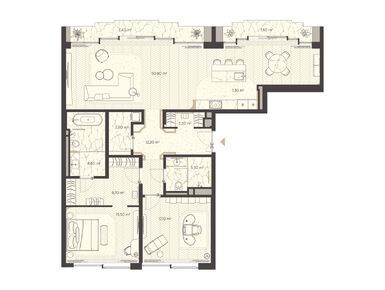 Квартирография представлена различными вариантами, включая двухуровневые резиденции и пентхаусы. В конце марта 2025 года в продаже есть 180 лотов: от 1-комнатных площадью 60,8 кв. м до 4-комнатных площадью 500,5 кв. м. Жилые помещения реализуются без отделки и с отделкой MR Base, цены начинаются от 171,36 млн рублей. Купить квартиру можно в ипотеку или в рассрочку под 0%.