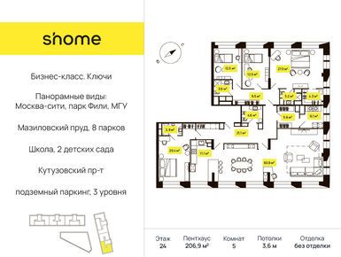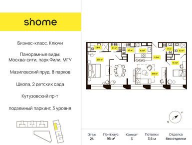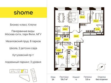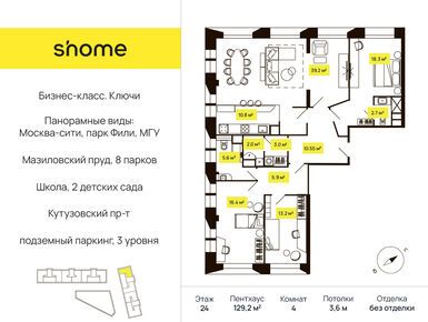 Дом «Shome» – современный проект бизнес-класса от девелопера «Велесстрой». Жилой комплекс расположен в западной части Москвы, в престижном районе Фили-Давыдково. Рядом есть удобный выезд на Рублевское шоссе и ТТК, в пешей доступности станция метро «Кунцевская» и «Славянский бульвар». Дорога до делового центра «Москва-Сити» займет 20 минут, до Красной площади и аэропорта «Внуково» 30 минут.