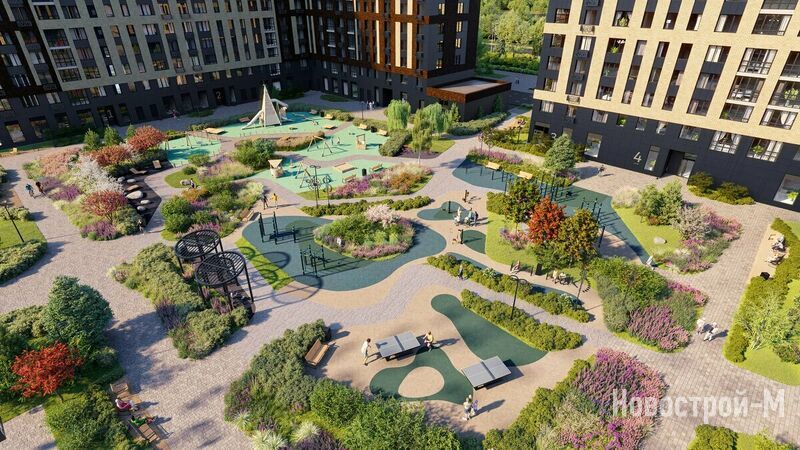 Также во дворах квартала будут отдельные места для спокойного отдыха, пикников и работы. Для спортсменов запланированы зоны для пробежек, занятий воркаутом, йогой, кроме того будут установлены столы для настольного тенниса.
