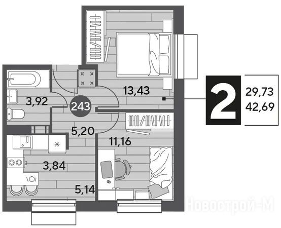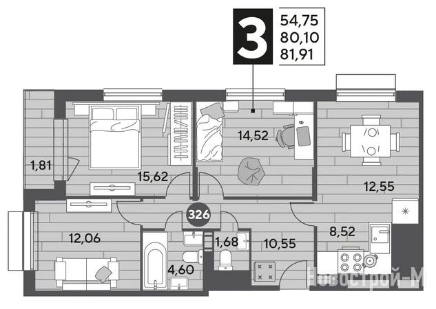 Квартиры площадью более 46 кв. м (начиная с двухкомнатных) идут в планировках с двумя санузлами. Есть варианты с балконами.