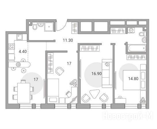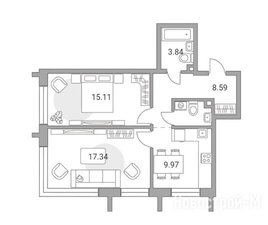 Квартирография включает различные планировочные решения: от студий до 4-комнатных евроформата. Отделка не предусмотрена.