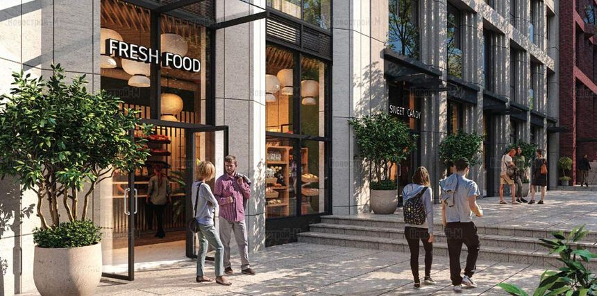 На первых этажах ЖК запроектированы коммерческие помещения для магазинов, кафе, пунктов услуг и других объектов. В центральном лобби разместятся лаунж-зоны с мягкой мебелью, столиками и биокамином, места для хранения колясок и велосипедов, гостевые санузлы, помещения для мытья лап домашним животным. Для жителей комплекса будет работать фитнес-центр с бассейном.