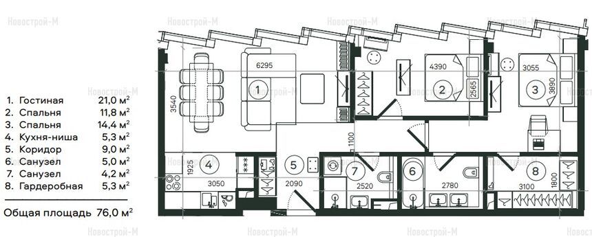 В рамках I очереди, которая будет сдана в эксплуатацию в III квартале 2022 года, покупатели могут приобрести апартаменты с европланировками: студии площадью 45,2 кв. м, 1-комнатные варианты площадью 43,2-65,1 кв. м и 2-комнатные площадью от 64,6 до 76 кв. м. Позже в продажу поступят еще более просторные лоты площадью до 95 кв. м.