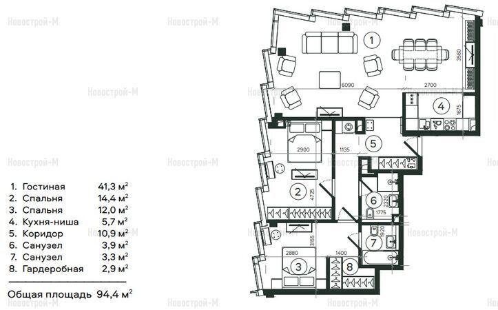 Во всех апартаментах предусмотрено панорамное остекление с использованием окон с пониженной теплопроводностью.