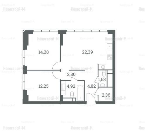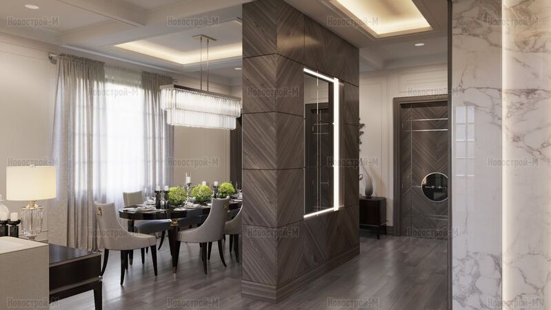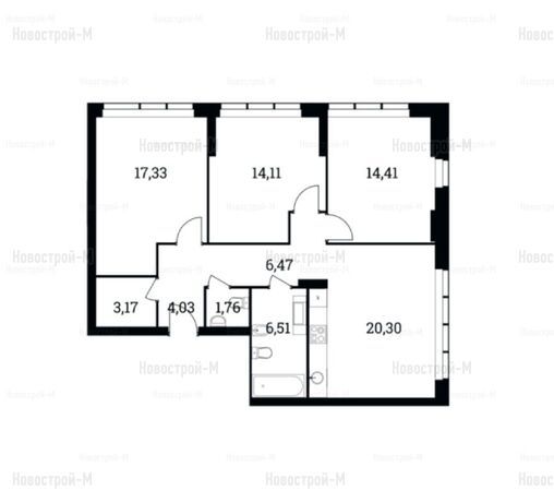 Санузлы преимущественно совмещенные, площадью от 3 до 4,5-5 кв. м. В квартирах, в которых 2 комнаты и больше, – по 2 санузла. Также предусмотрены гардеробные – по одной в однокомнатных квартирах, 2-3 – в многокомнатных.