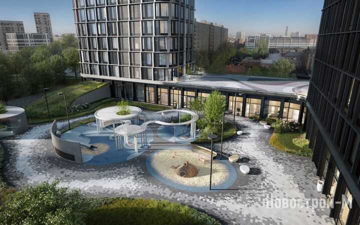 Территория застройки составляет 0,69 га. Кроме жилых домов, здесь появится приватный двор с зонами для досуга детей и взрослых и зона коммерции в стилобатной части.