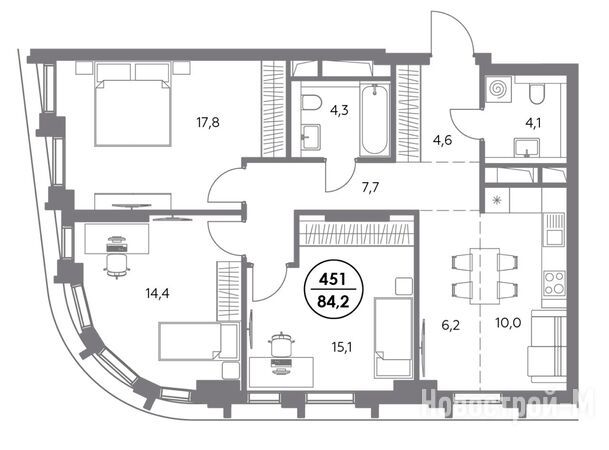 Самый дорогой лот — трехкомнатная квартира площадью 89,9 кв. м. стоимостью 51,6 млн руб.